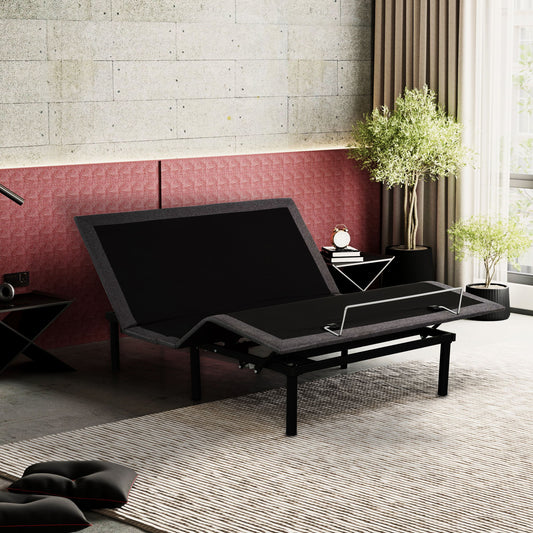 Zero Clearance Adjustable Bed Base Frame With Quiet Motor And Dual USB Ports, Queen Size - Black