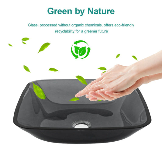 Artistic Tempered Glass Vessel Sink With Faucet And Pop Up Drain - Matte Black