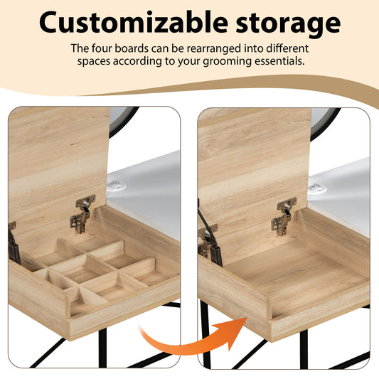 Multi Functional 2 In 1 Vanity Desk With Flip Top Mirror Material - White Oak