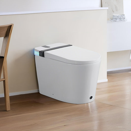 Smart Toilet With Bidet Seat Built In, Auto Open / Close Seat, Foot Sensor, LED Display - White
