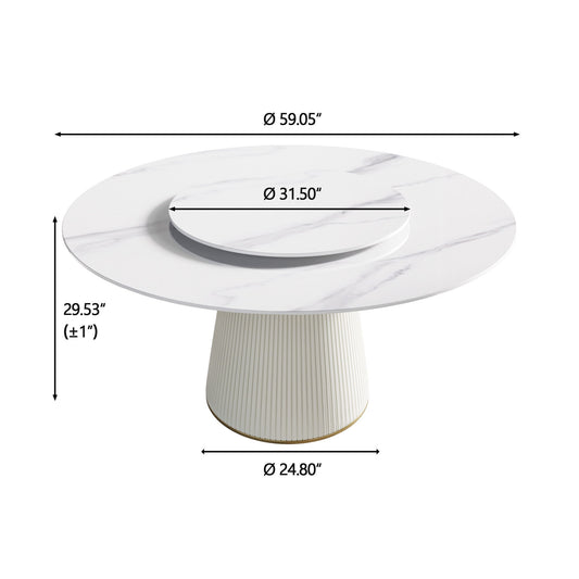Modern Artificial Stone Round Plywood Base Dining Table, Can Accommodate 8 People, Artificial Stone Turntable (Not Including Chairs) - White / Beige