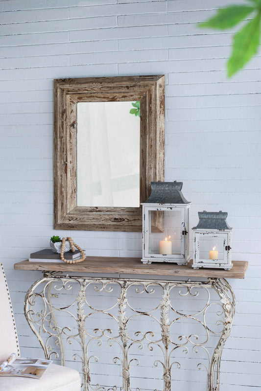 Wooden Candle Lantern Decorative, Hurricane Lantern Holder Decor For Indoor Outdoor, Home Garden Wedding - Ivory