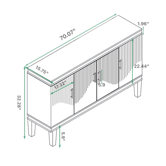 4 Door Cabinet, Large Storage For Living Room - Blue