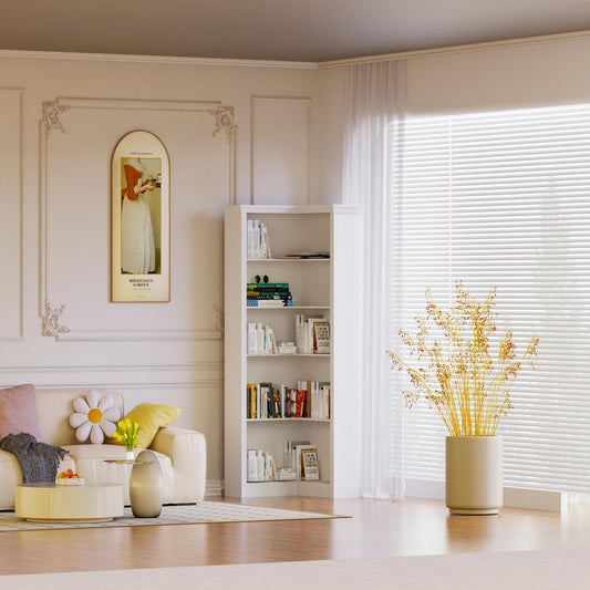 Modern 5 Tier Corner Bookshelf With Adjustable Storage For Bedroom And Living Room - White