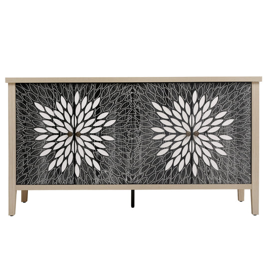 Modern 4 Door Sideboard With Creative Carved Surface And Adjustable Shelves