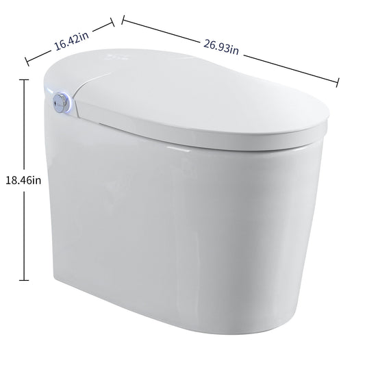 Tankless Smart Toilet With Bidet Built In, 1 Piece, Auto Flush, Auto Open / Close, Heated Seat, Bubble Wash, Warm Water And Dry, Adjustable Temp, Remote Control Side Know - White