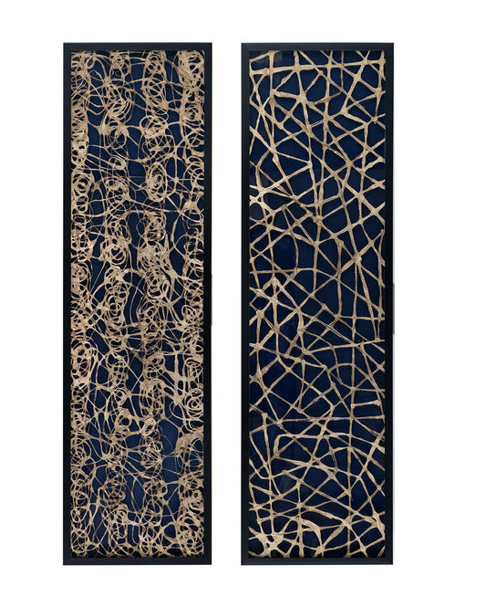Rectangular Shaped Rice Paper Shadow Box Decor Wall Art, Transitional Style Wall Decor (Set of 2) - White / Blue