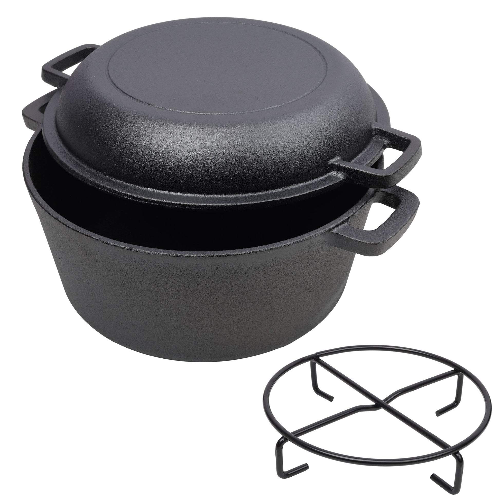2 In 1 Pre-Seasoned Cast I Dutch Oven With Dual Handles, 5 Quart - Black