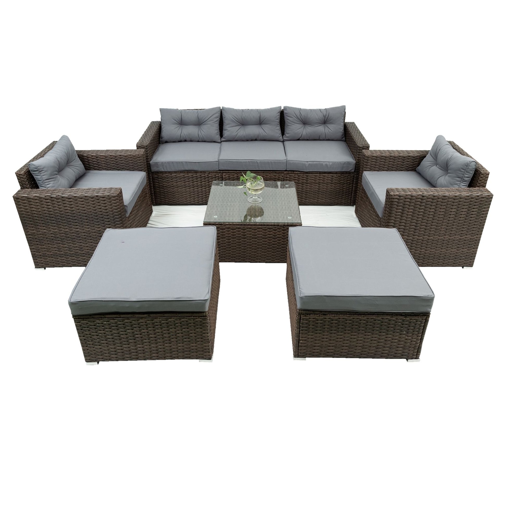 6 Piece Patio Rattan Wicker Outdoor Furniture Conversation Sofa Set With Removeable Cushions And Temper Glass Tabletop - Brown