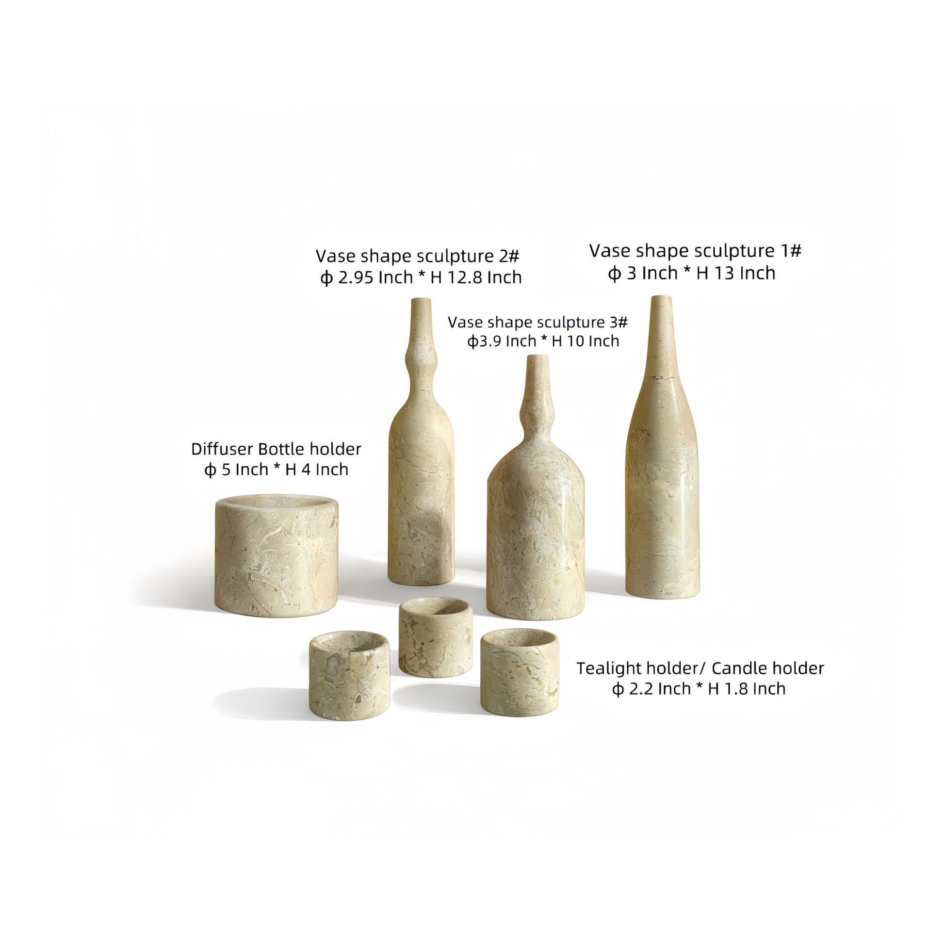 - Versatile Set: Includes diffuser holder, candle holders, and sculptural vases to complement any decor.