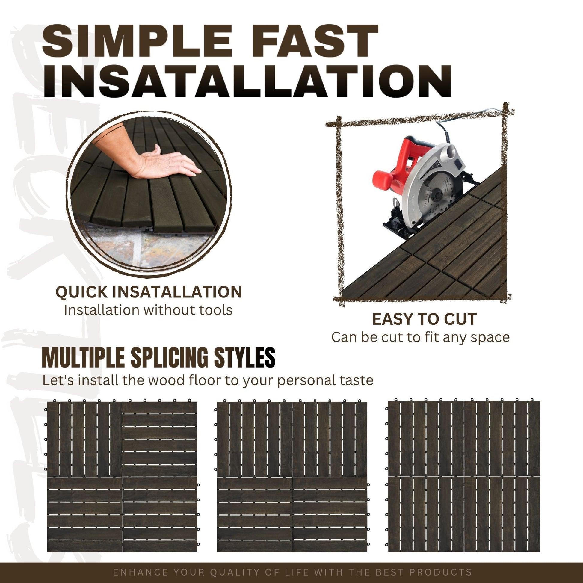 Acacia Hardwood Interlocking Deck Tiles, Striped Pattern - Dark Brown