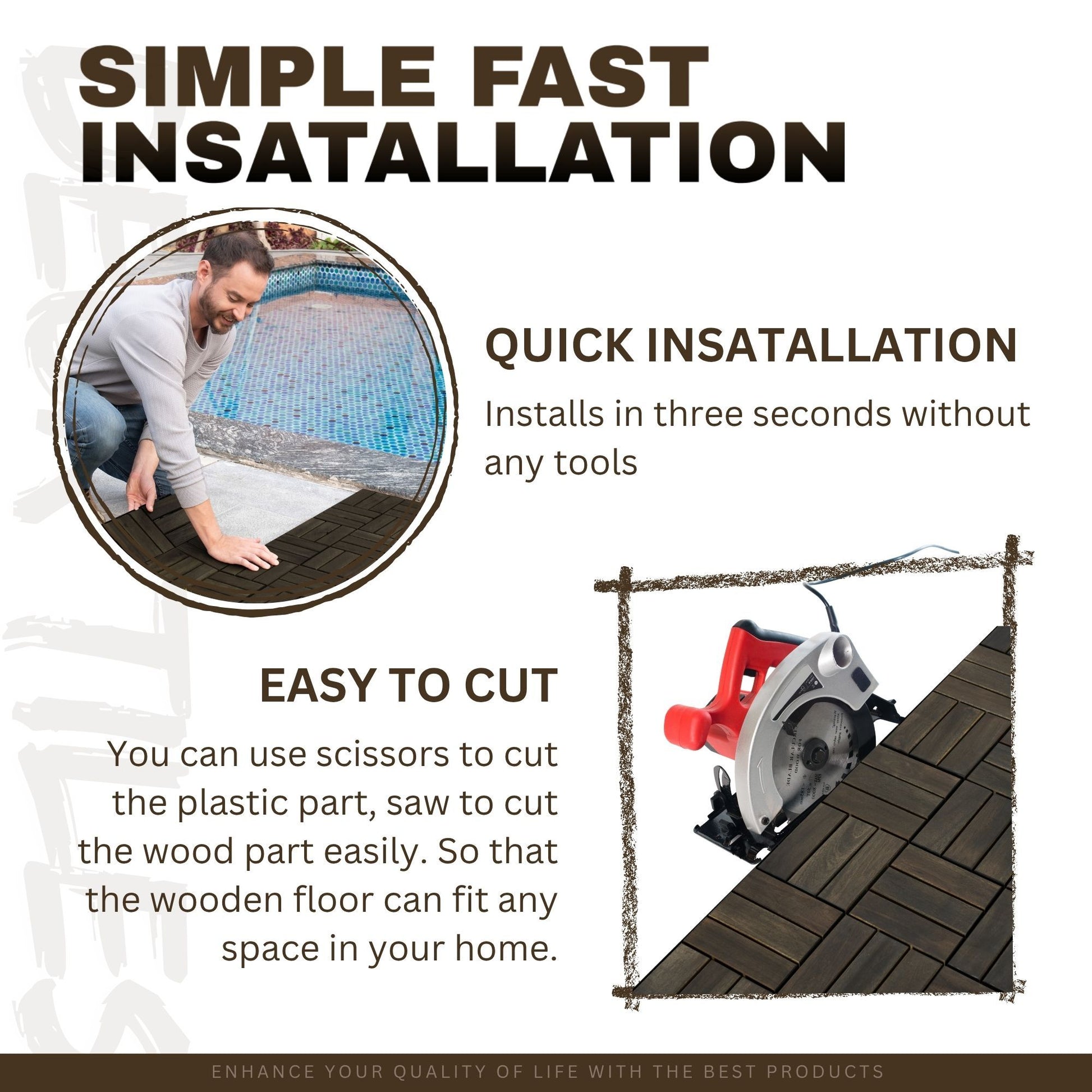 Acacia Wood Interlocking Deck Tiles Checker Pattern For Outdoor Flooring - Brown