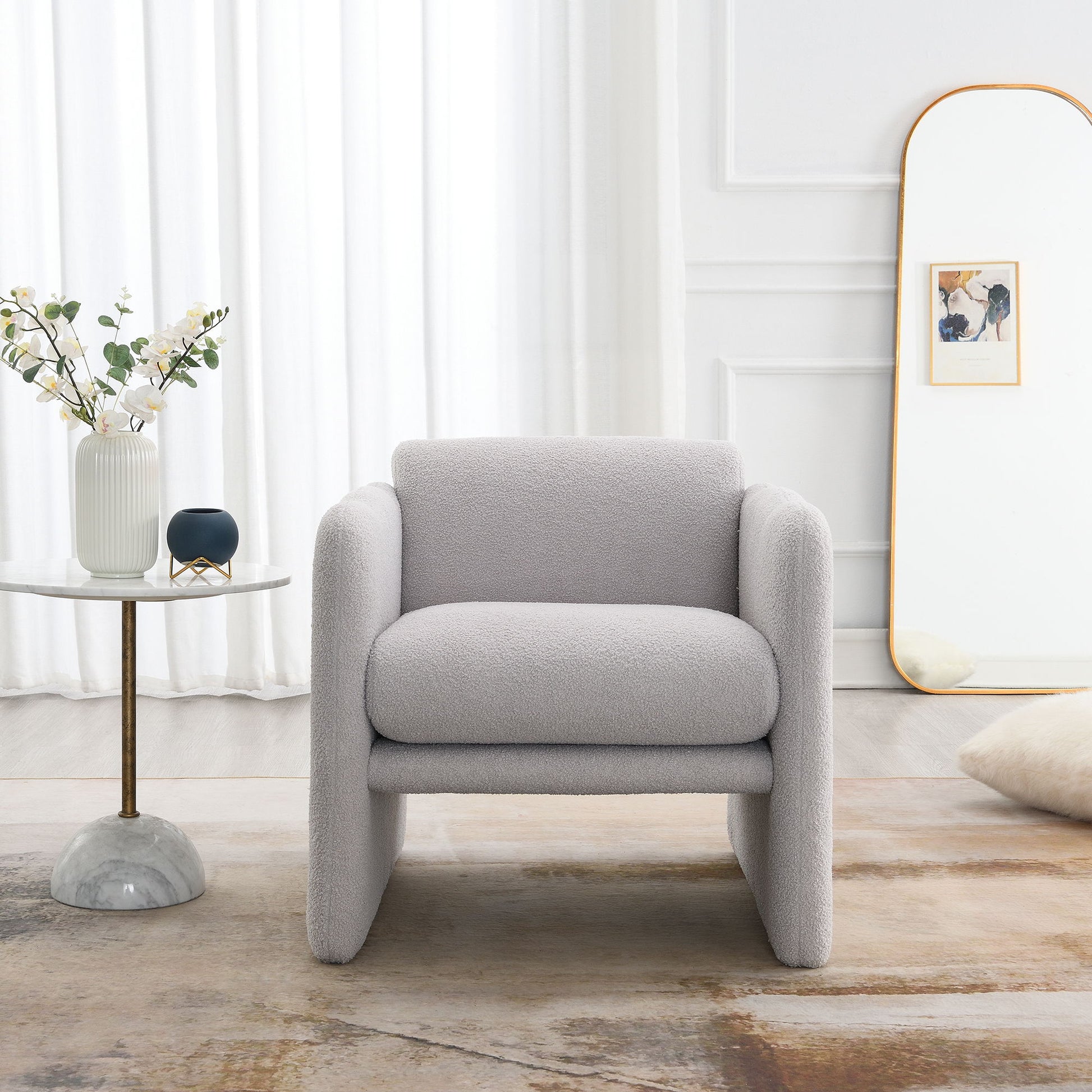 Arm Chair With Waved Arms, Metal Decoration On Both Side Arms, Accent Chair For Primary Living Space, Living Room, Bedroom, Teddy Fabric - Light Gray
