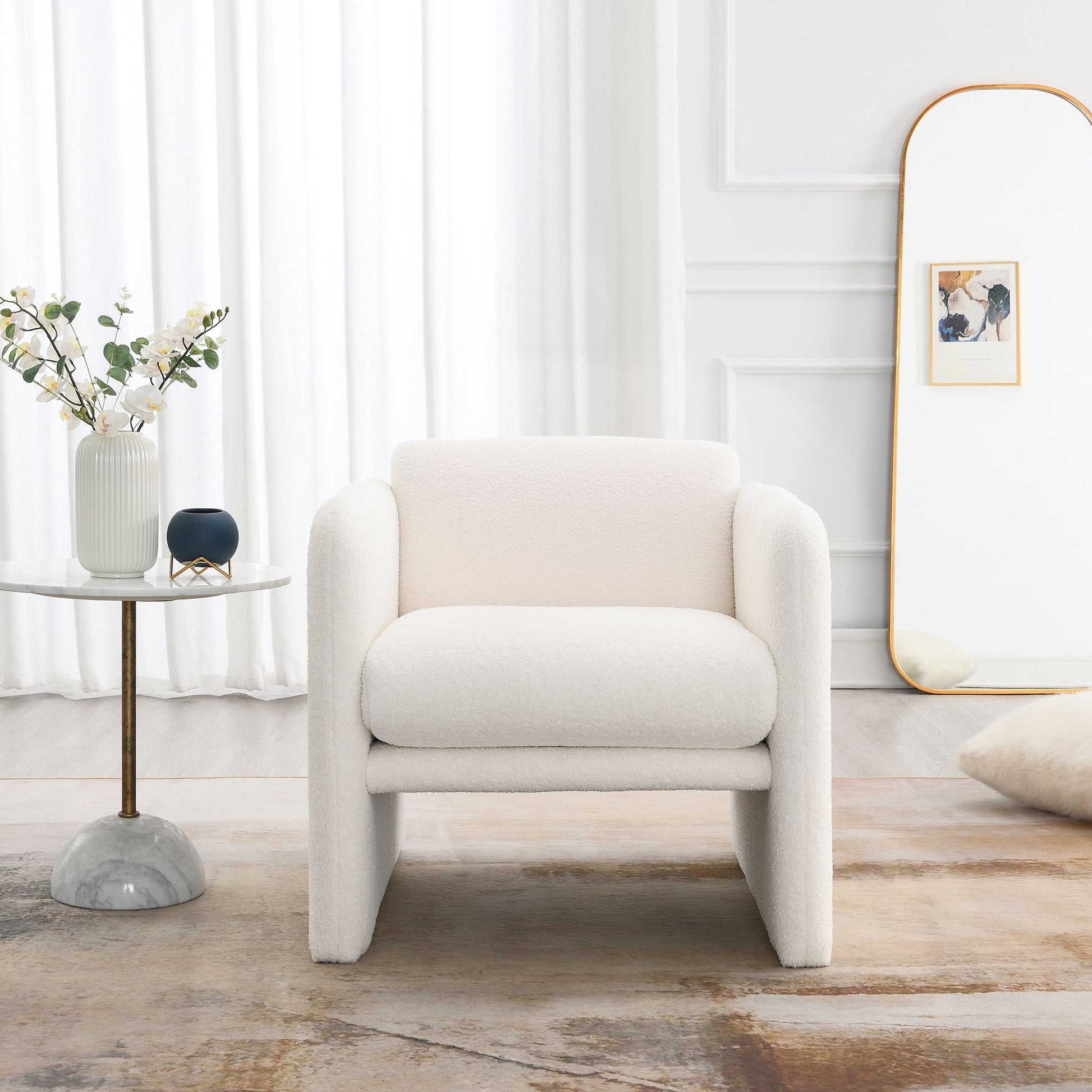 Arm Chair With Waved Arms, Metal Decoration On Both Side Arms, Accent Chair For Primary Living Space, Living Room, Bedroom, Teddy Fabric - White
