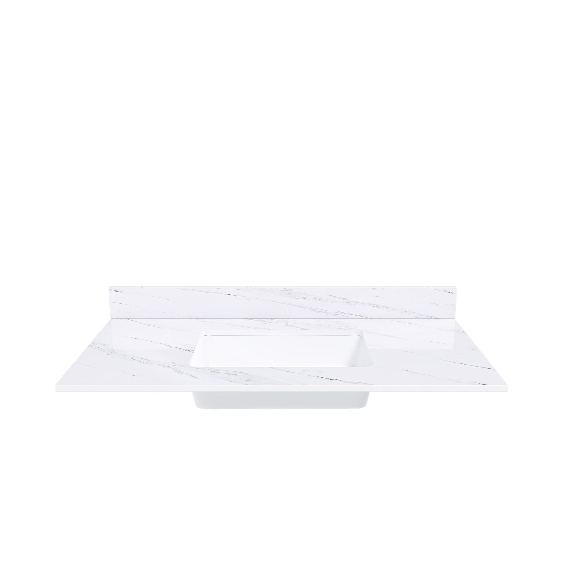 - Dimensions: Vanity top measures 4-inch high backsplash, fitting most standard vanity cabinets.