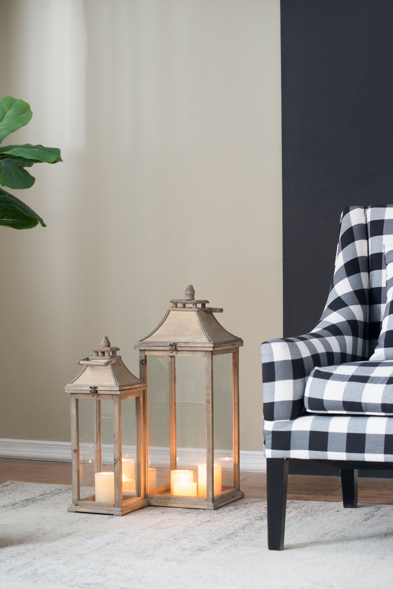 - Measurements: Large lantern measures 10.6 x 10.6 x 28.4 inches, and small lantern measures 7.5 x 7.5 x 20.9 inches.