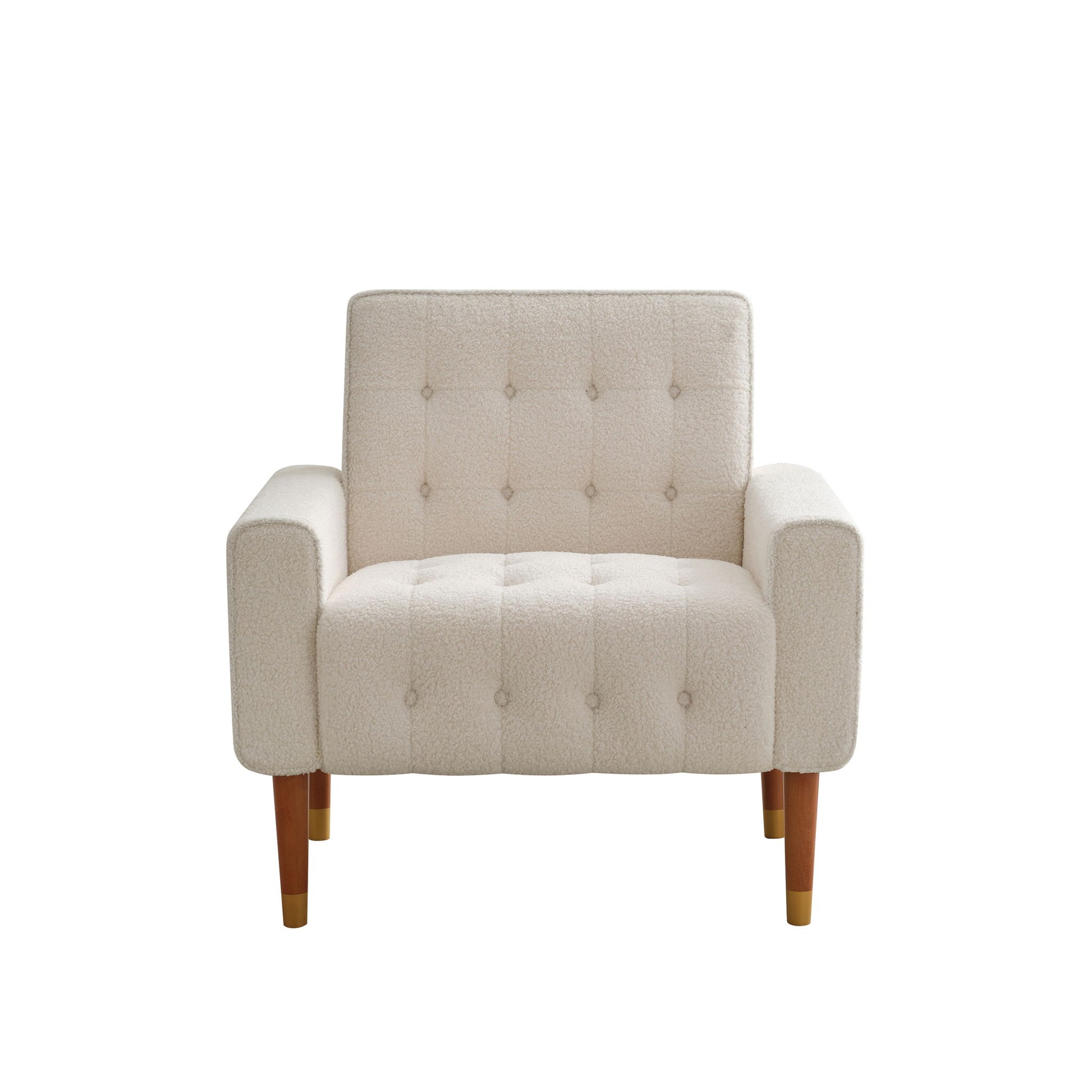 Classic Biscuit Style Accent Chair Comfortable Armrests, Soft Fabric, Elegant Solid Wood Legs With Gold Finish - Beige