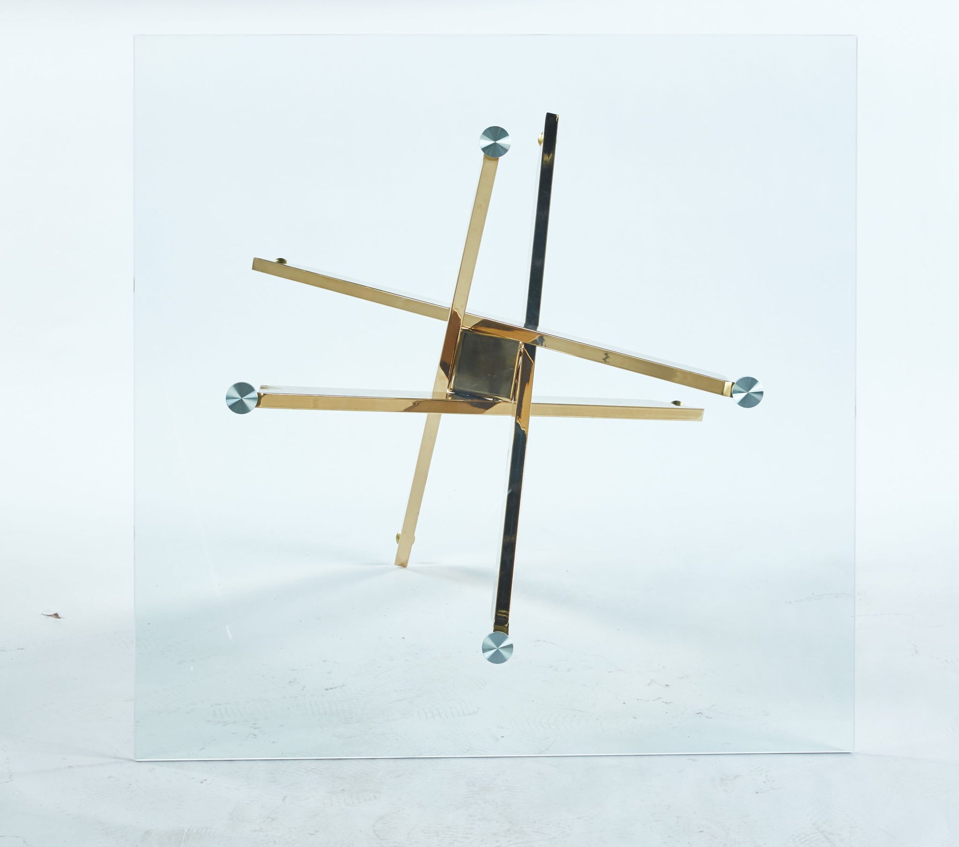 Dining Table With Cross Metal Leg And Tempered Glass, Modern Space Saving Kitchen Table For Living Room, Chrome Legs, Square Table - Golden