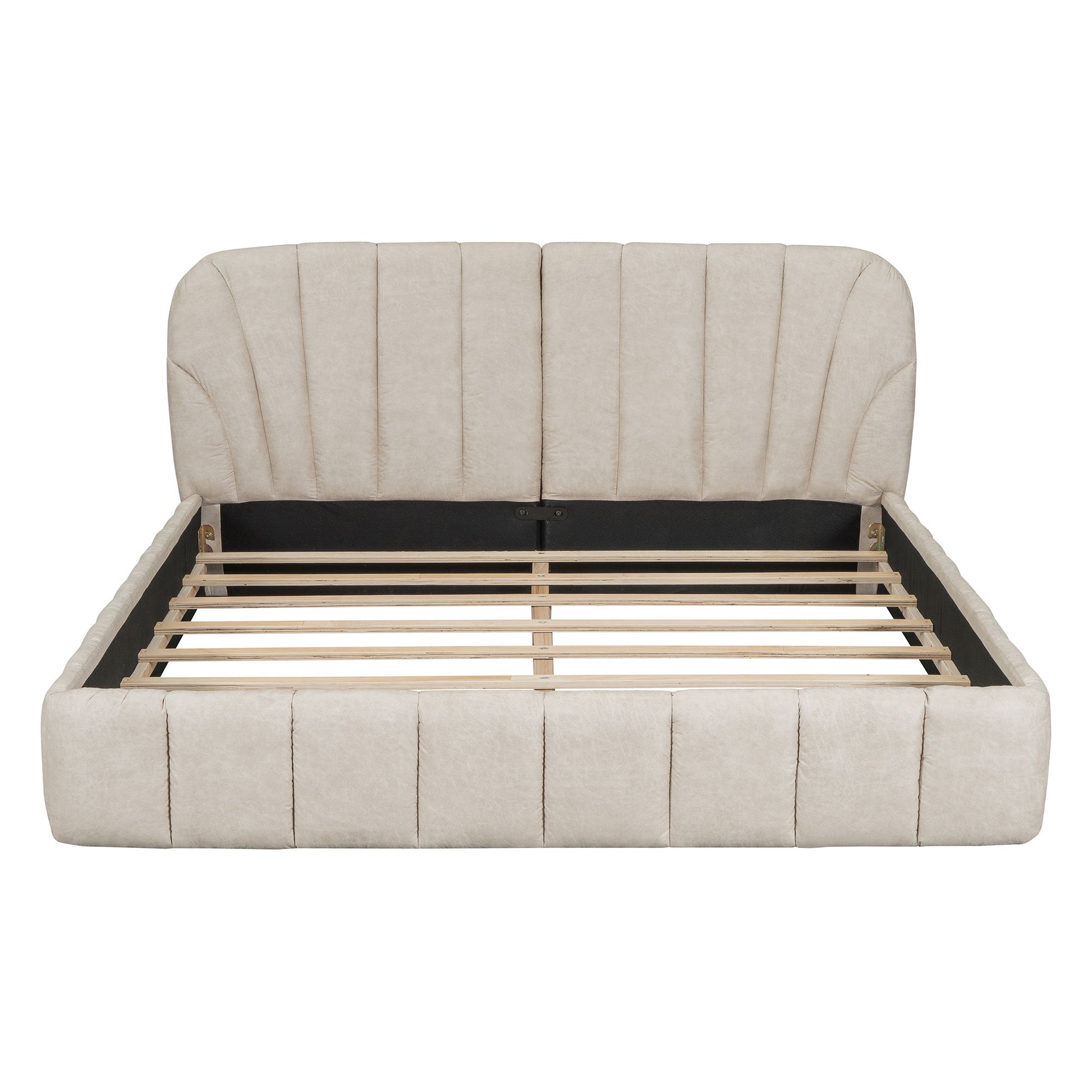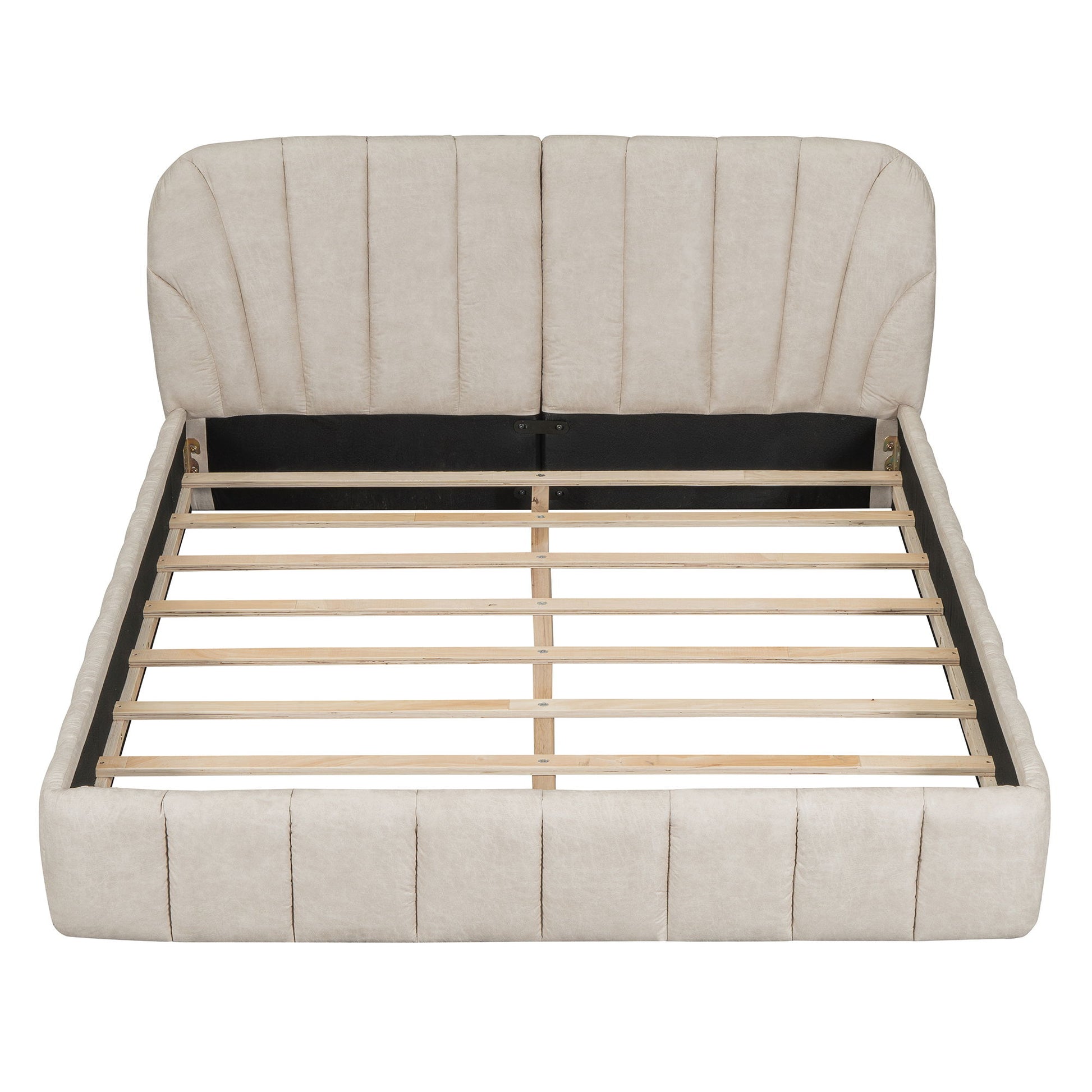 Queen Size Upholstered Platform Bed, Polyester - Beige