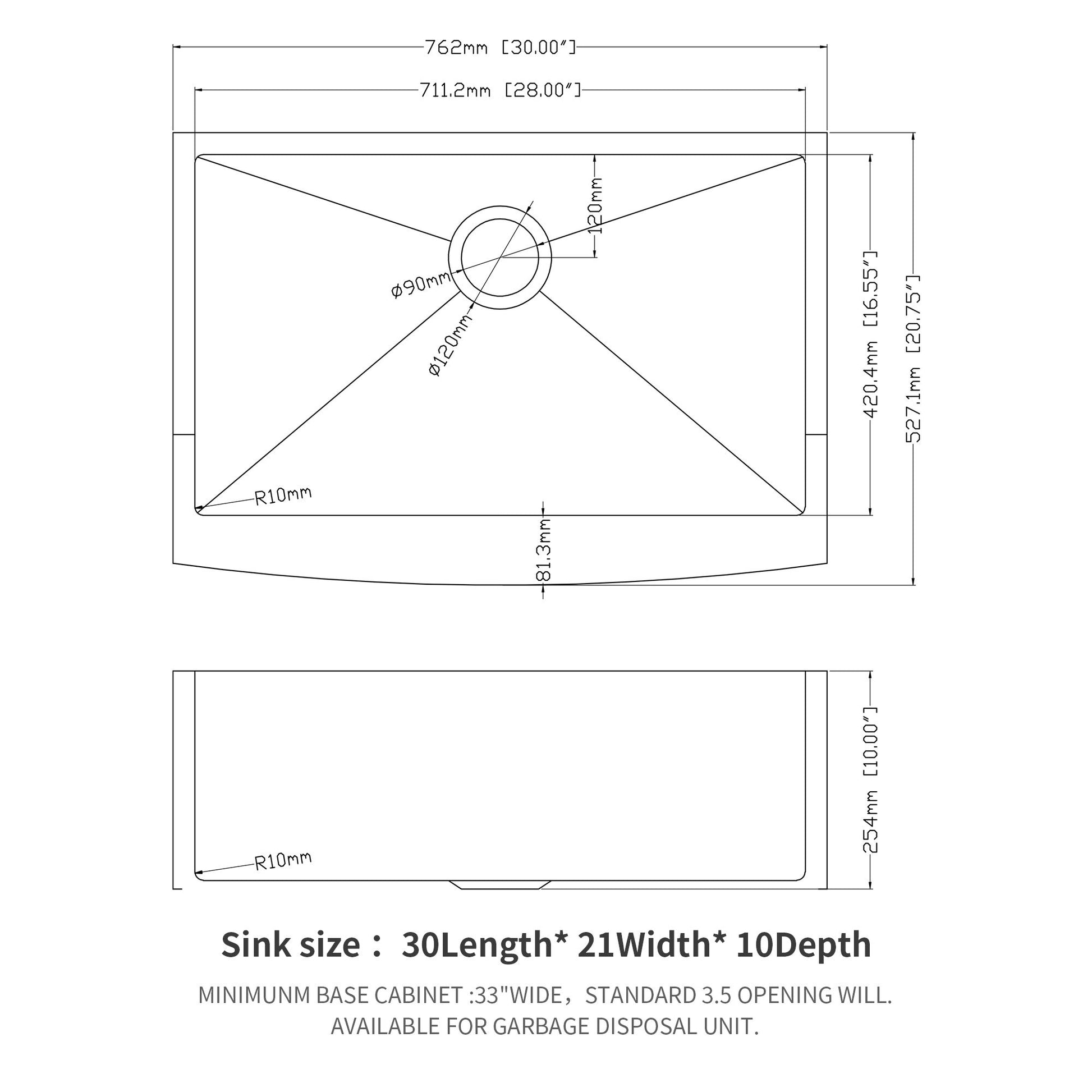 30.0"W x 21.0"D x 10.0"H - 35.0 lb
