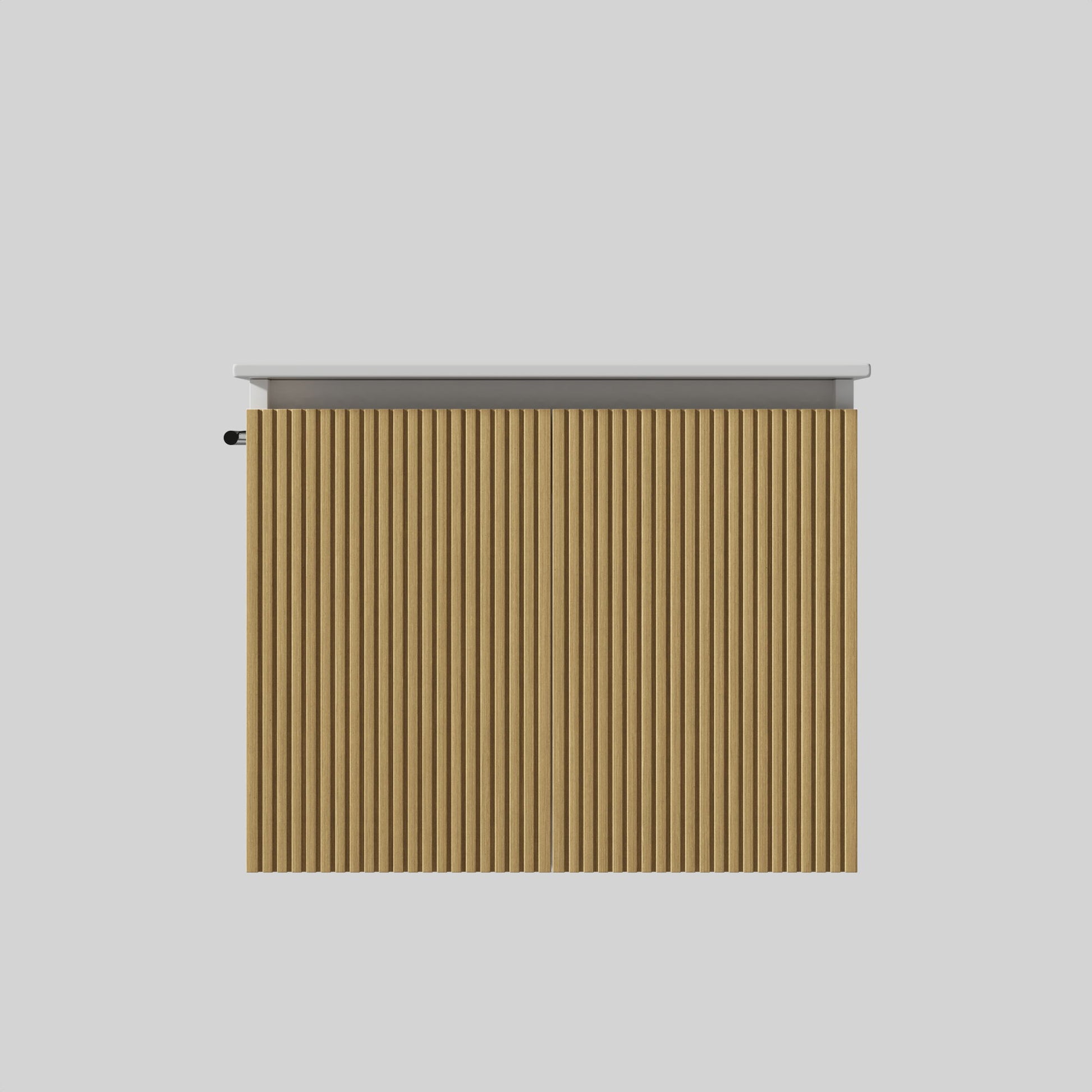 - Wall-Mounted Vanity: floating cabinet with integrated sink and included towel rack for space-saving bathroom organization