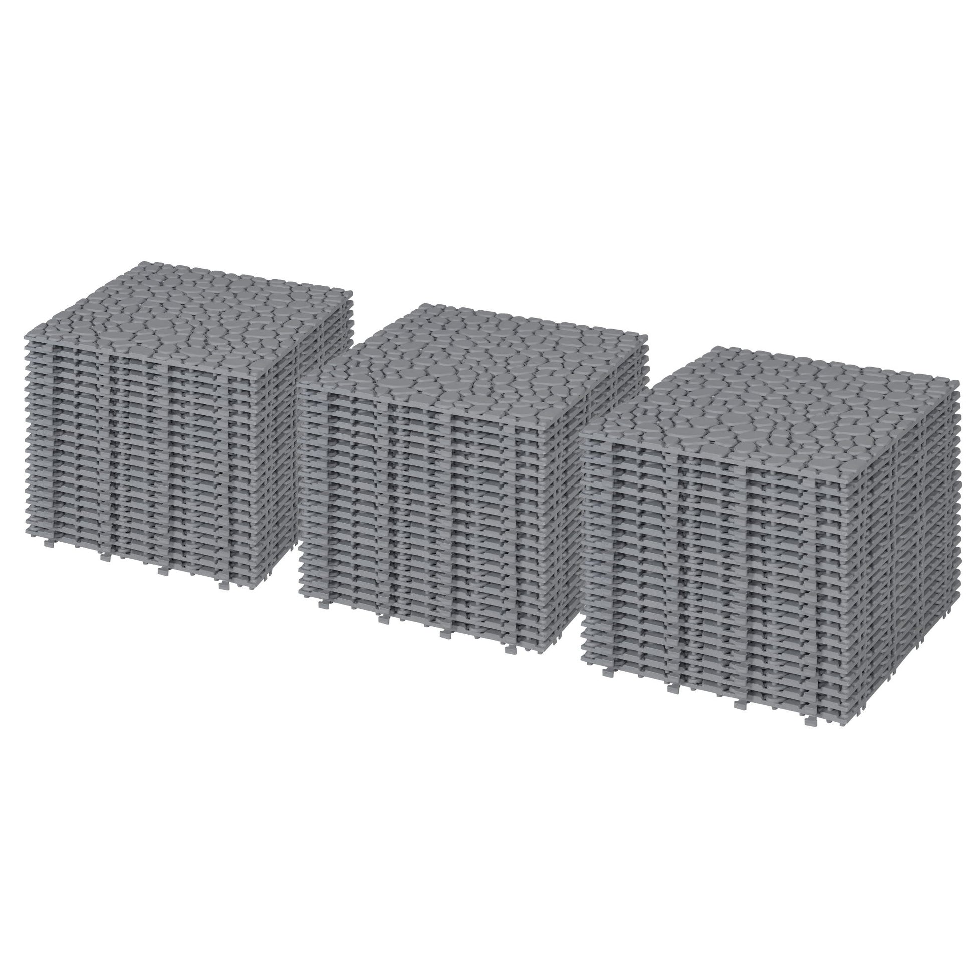 Interlocking Deck Tiles Plastic Waterproof Outdoor All Weather Anti-Slip Bathroom Shower Balcony Porch Strong Weight Capacity Upto 440 Lbs, Pebble Stone Pattern Pack Of 60 - Gray