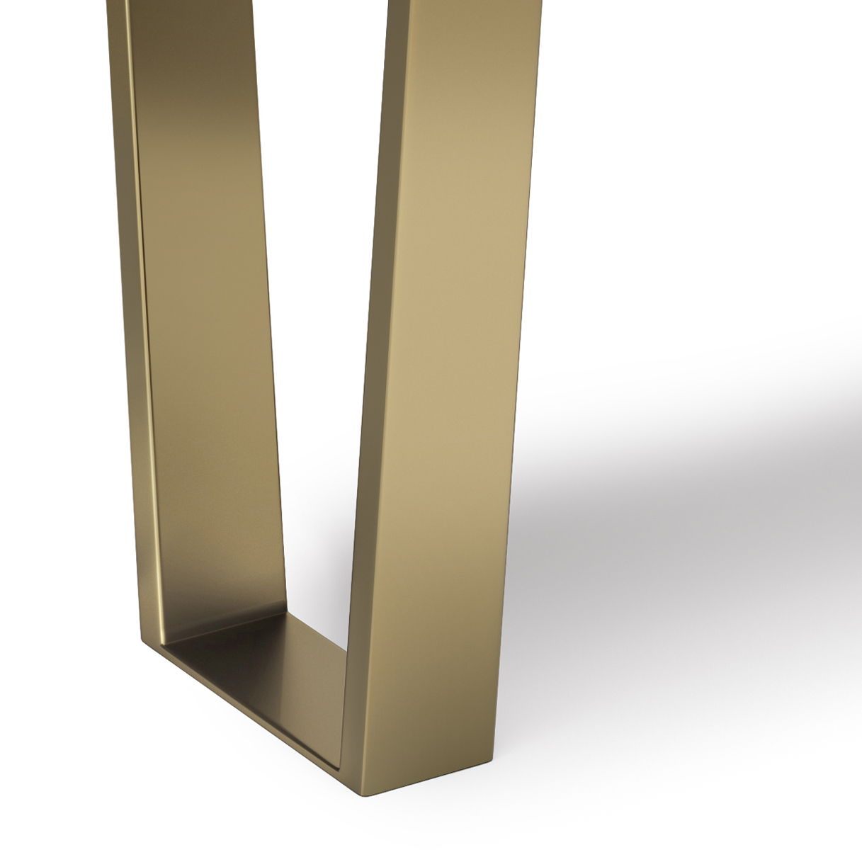 - Features thick sturdy bench seat and u shaped gold powder coated metal legs