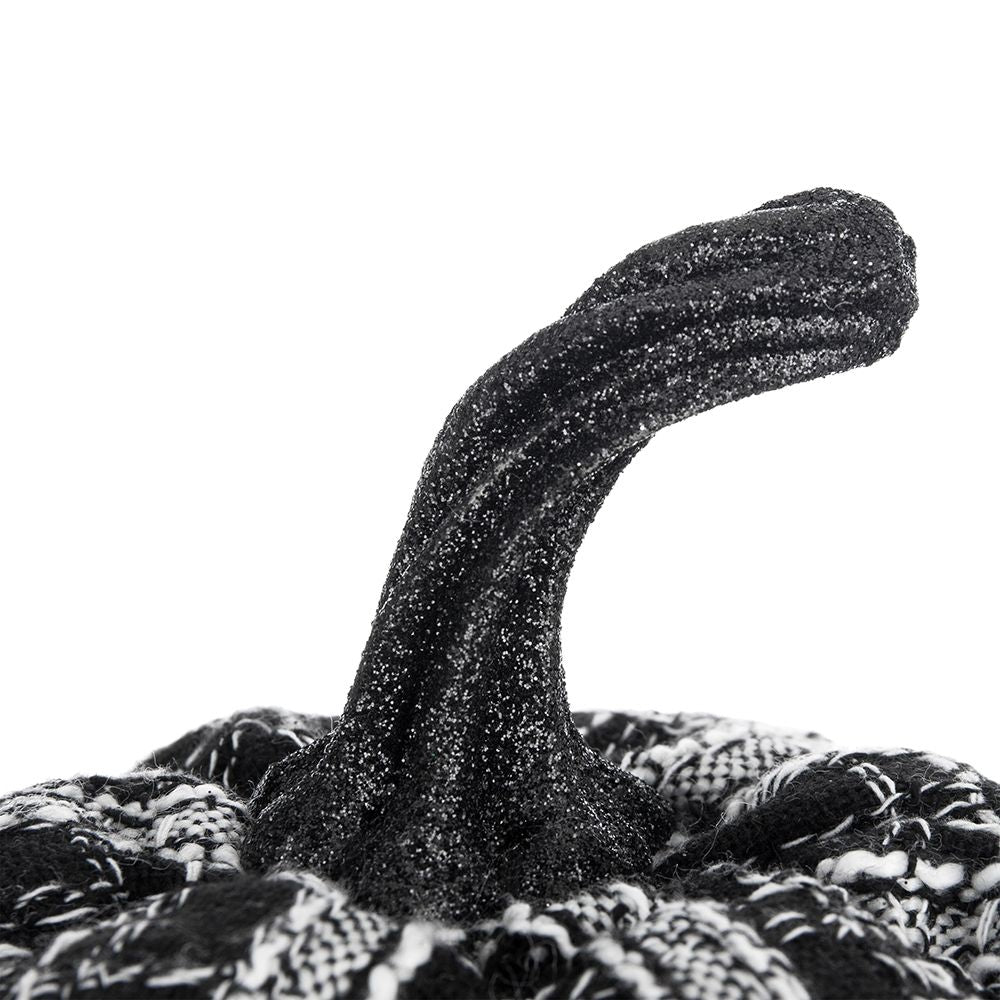 - Farmhouse Style: Made from black and white fabric with a knit plaid motif, this pumpkin embodies the farmhouse style, making it ideal for autumn decorations in living rooms and dining rooms.