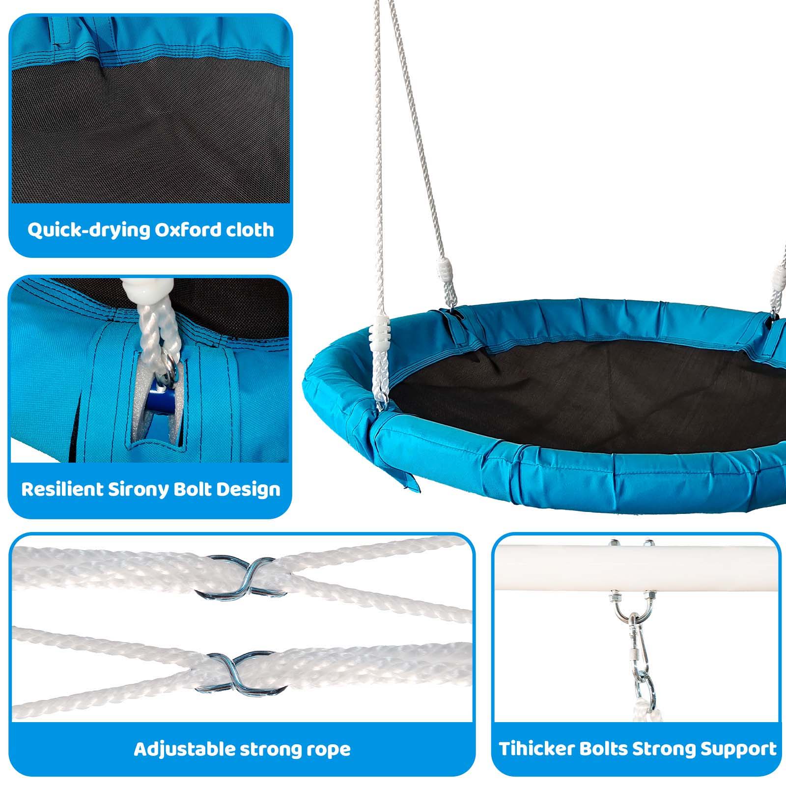 - Spacious Swing: The 40-inch diameter round swing seat accommodates 2-3 children simultaneously, providing ample space for shared play.