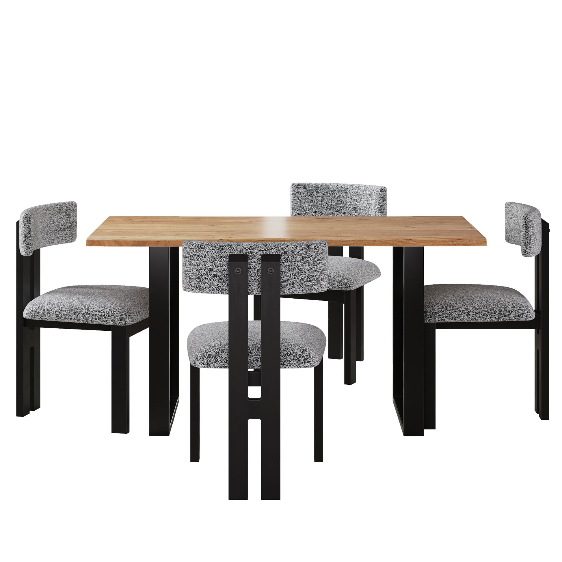 Mid Century 5 Piece Dining Set With Upholstered Metal Leg Chairs And Solid Wood Top Table - Black / White / Natural