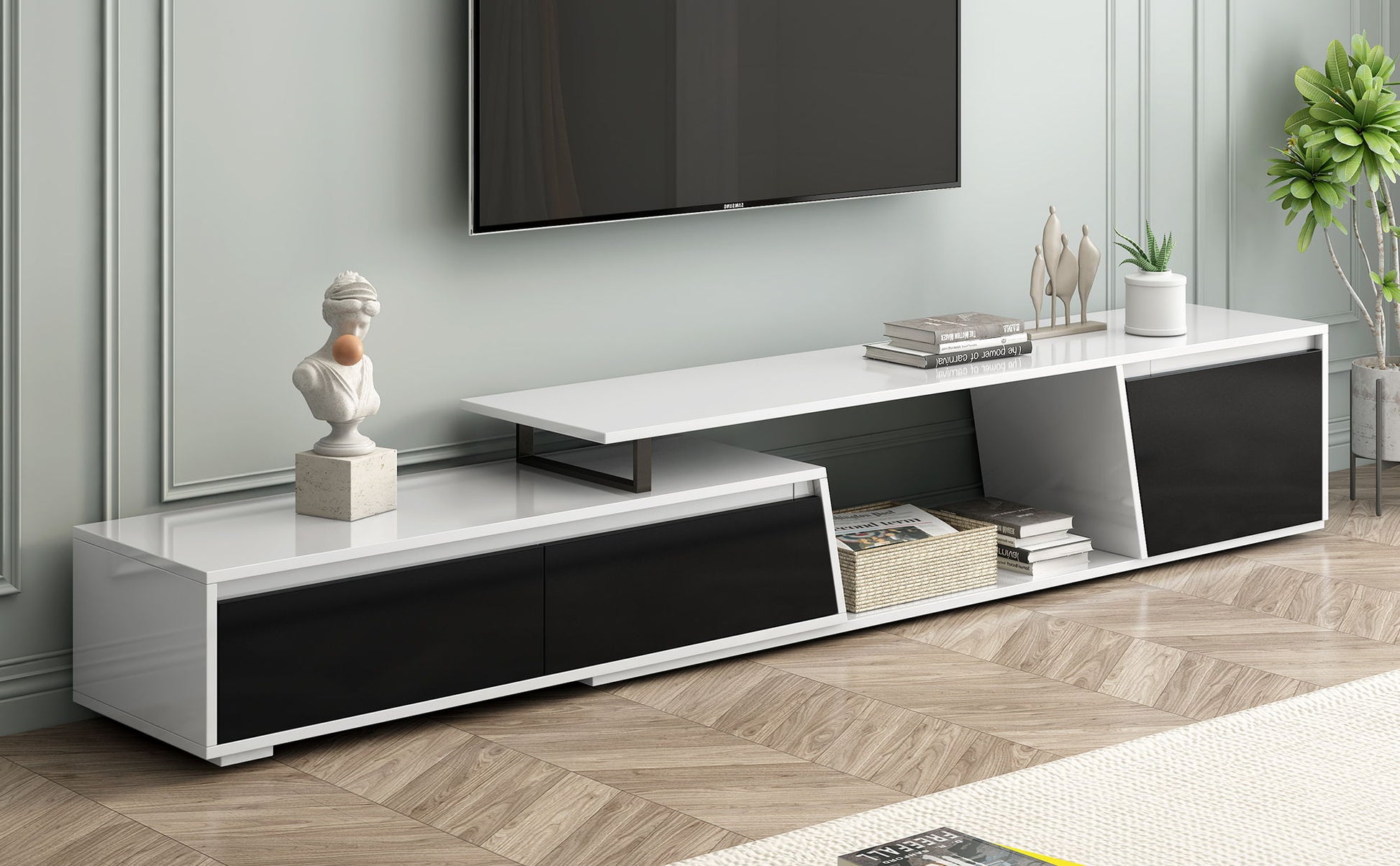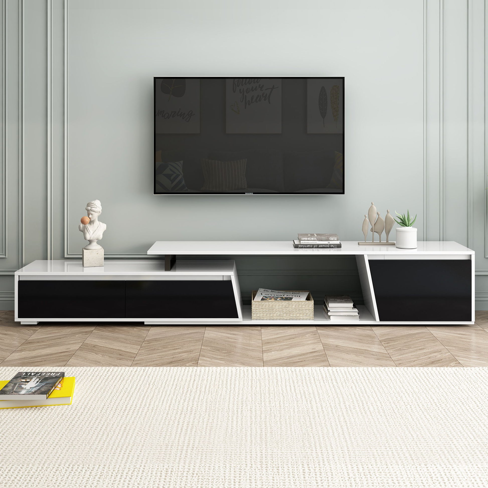 Modern, Minimalist Rectangle Extendable TV Stand, TV Cabinet With 2 Drawers And 1 Cabinet For Living Room, Up To 100" - White