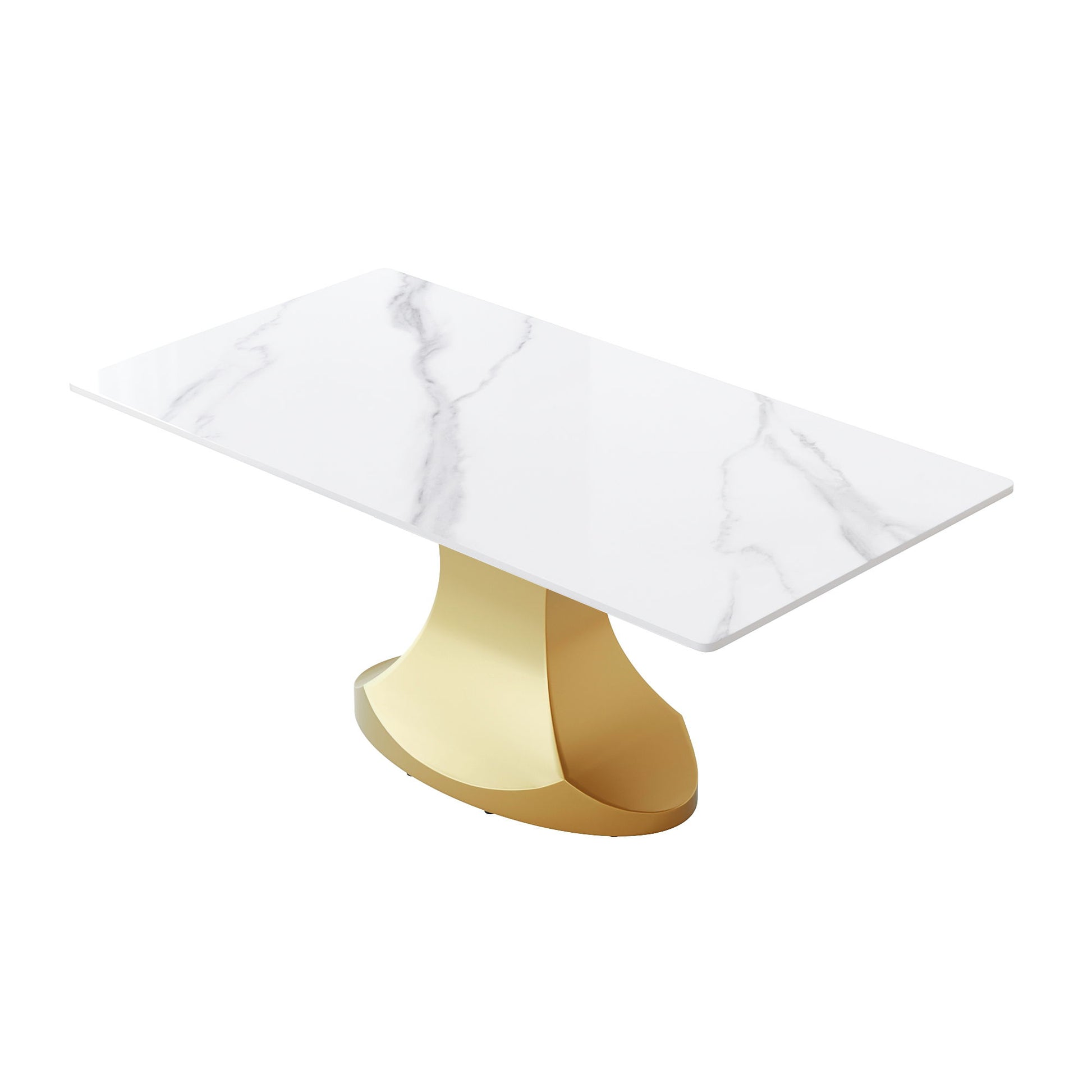 70.84" Modern Artificial Stone Panel Golden Stainless Steel Curved Legs, Can Accommodate 6-8 People - White / Gold