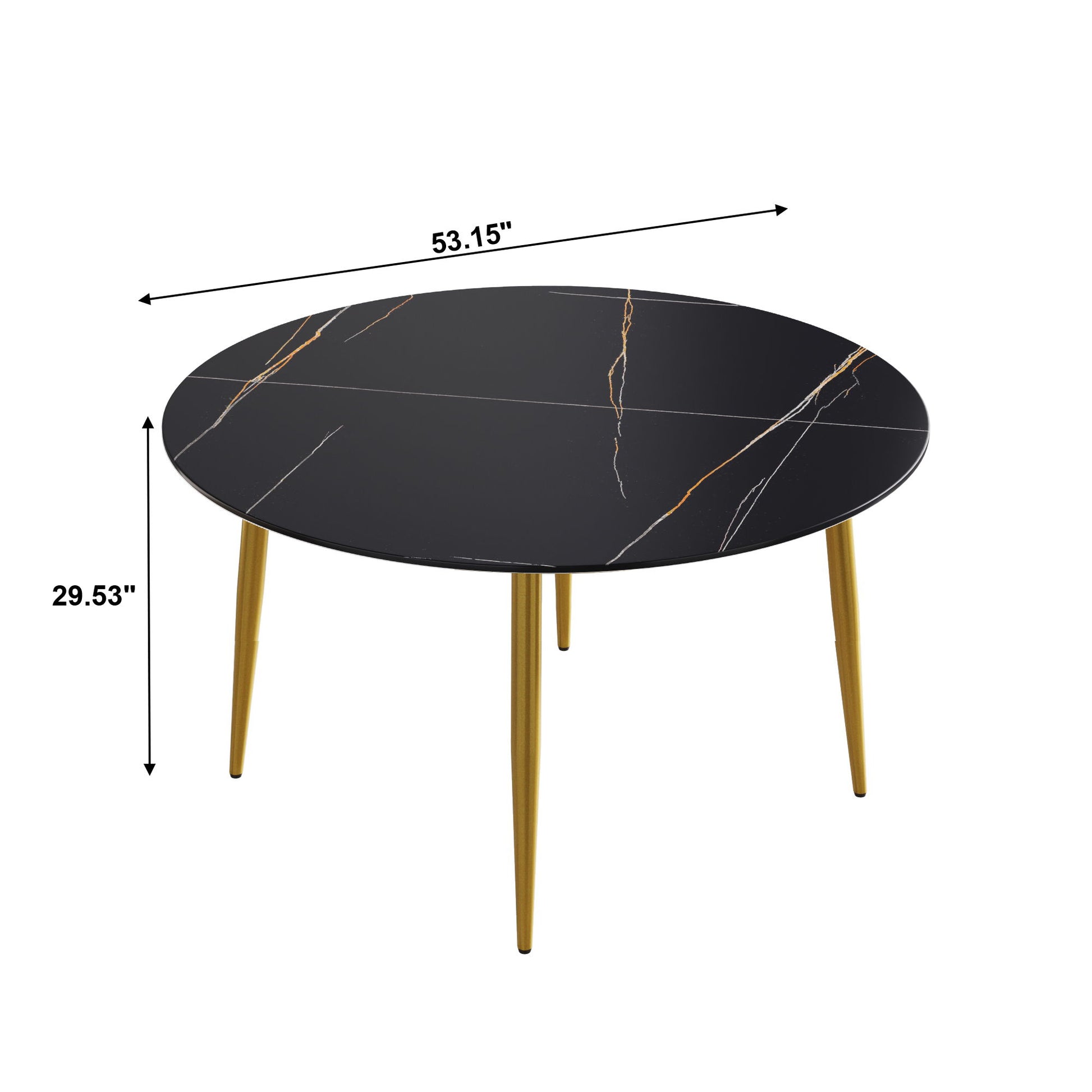 Modern Artificial Stone Round Dining Table With Golden Metal Legs, Can Accommodate 6 People - Black