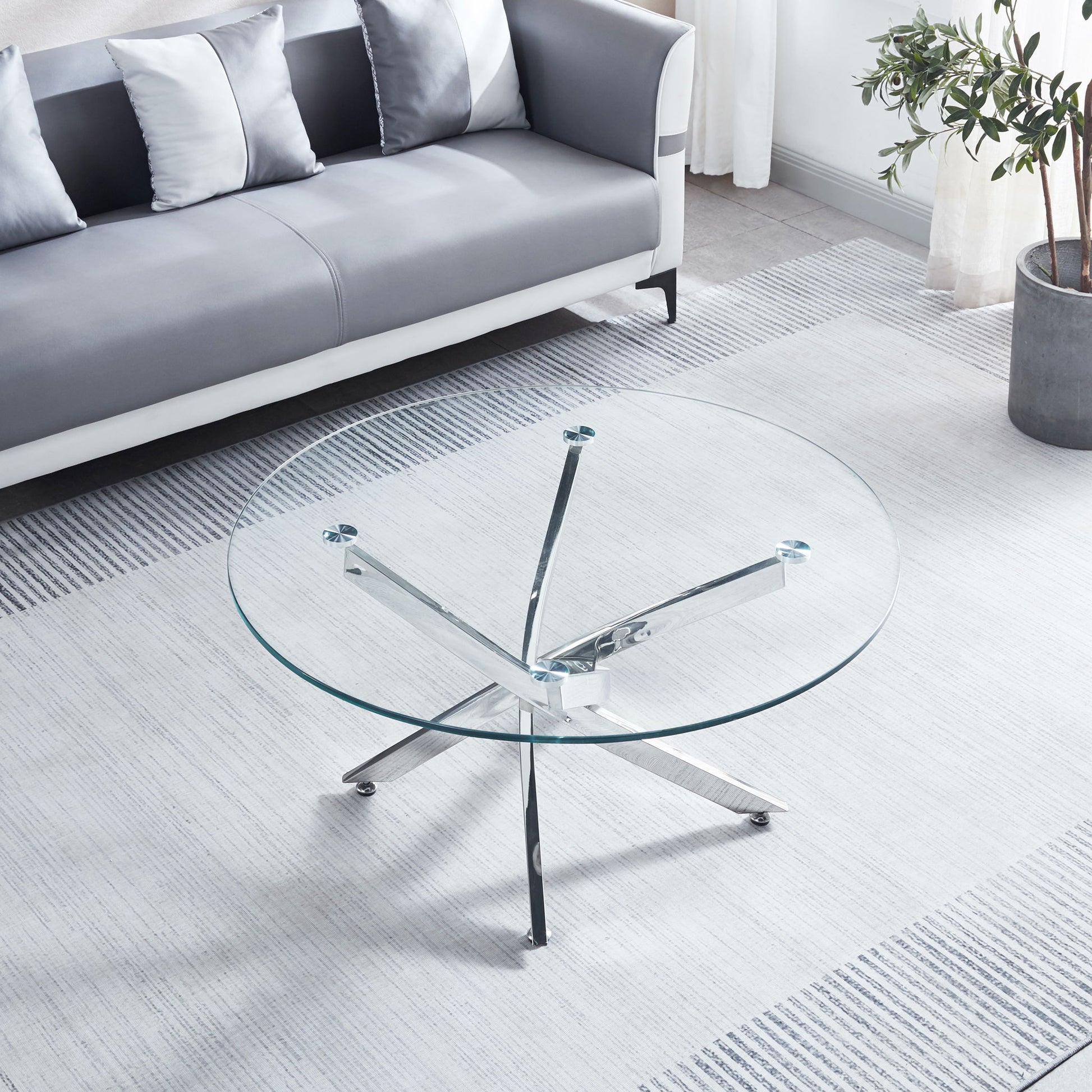 Modern Round Tempered Glass Coffee Table With Chrome Legs - Silver
