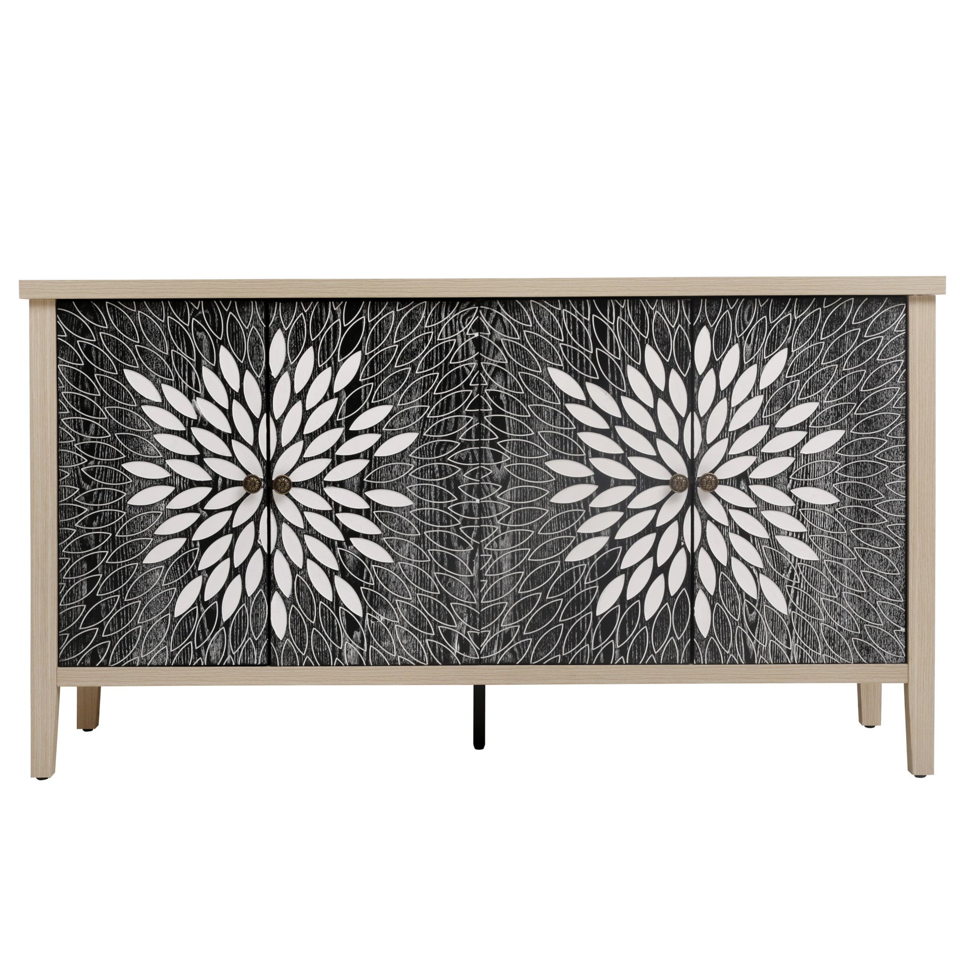 Sideboard Buffet Cabinet, Storage Cabinet With Storage, Modern Storage Cabinet With 4 Doors & Adjustable Shelves For Living Room, Dining Room, Kitchen And Entryway - Black / Natural