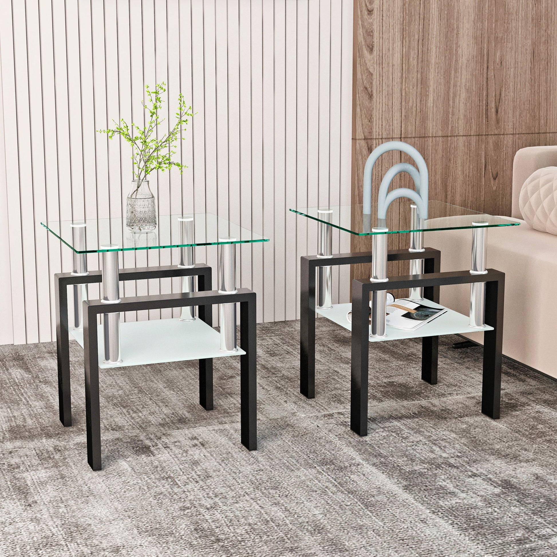 Modern Tempered Glass Tea Table, End Square Table For Living Room (Set of 2) - Transparent / Black