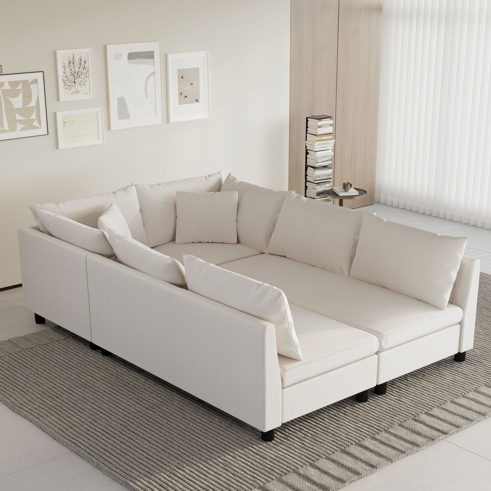 Modular Sectional Bed Couch Set With Pillows Free Combination, Minimalist Style Oversized 6 Seat Convertible Sofa - Cream