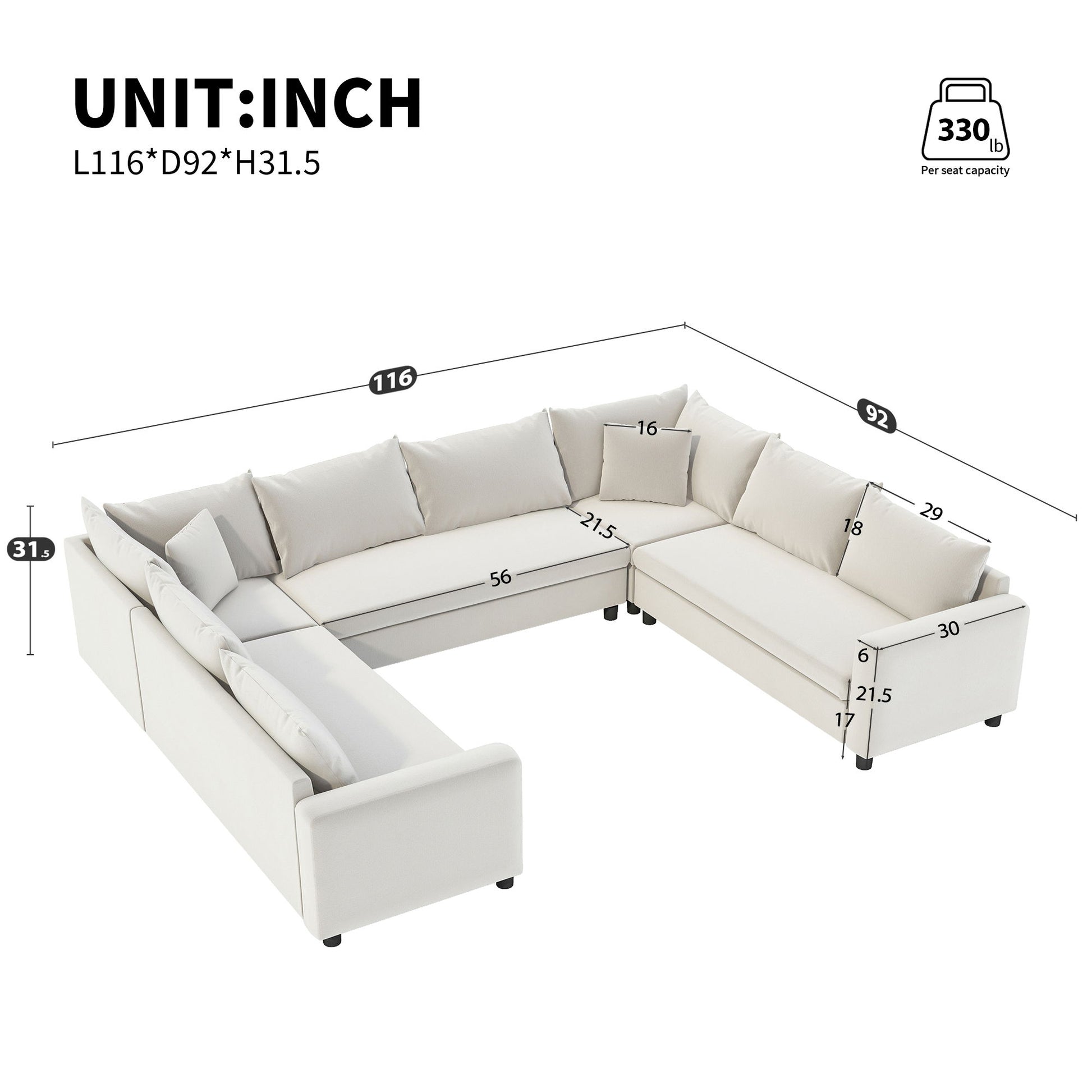 - High Weight Capacity: Designed to support up to 330 pounds per seat, this sofa is both comfortable and safe for people of all sizes. The reinforced frame and strong construction guarantee that it withstands heavy use without compromising structural integrity.
