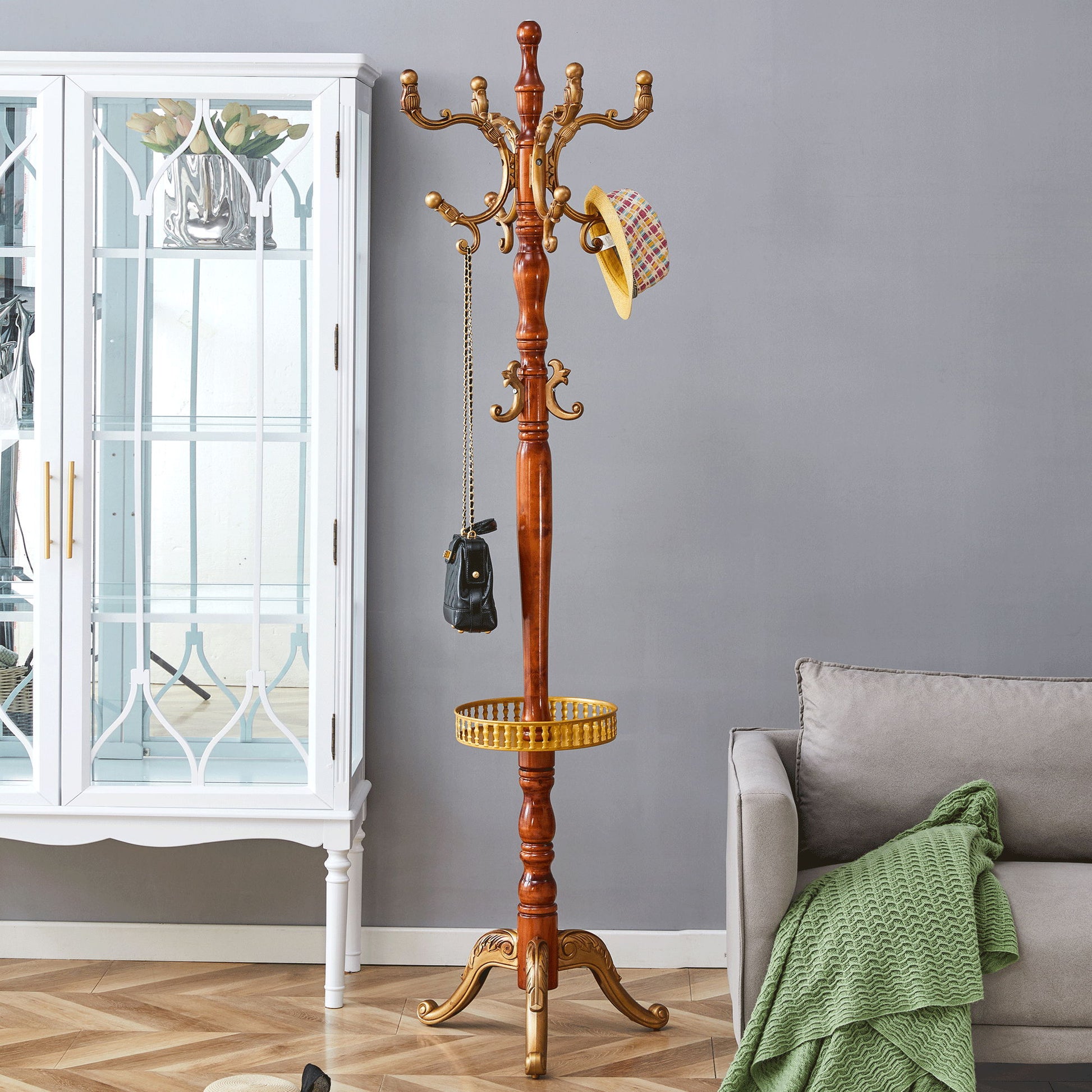 Modern Crabapple Hanger With Resin Stainless Steel Multifunctional Storage Rack - Wood
