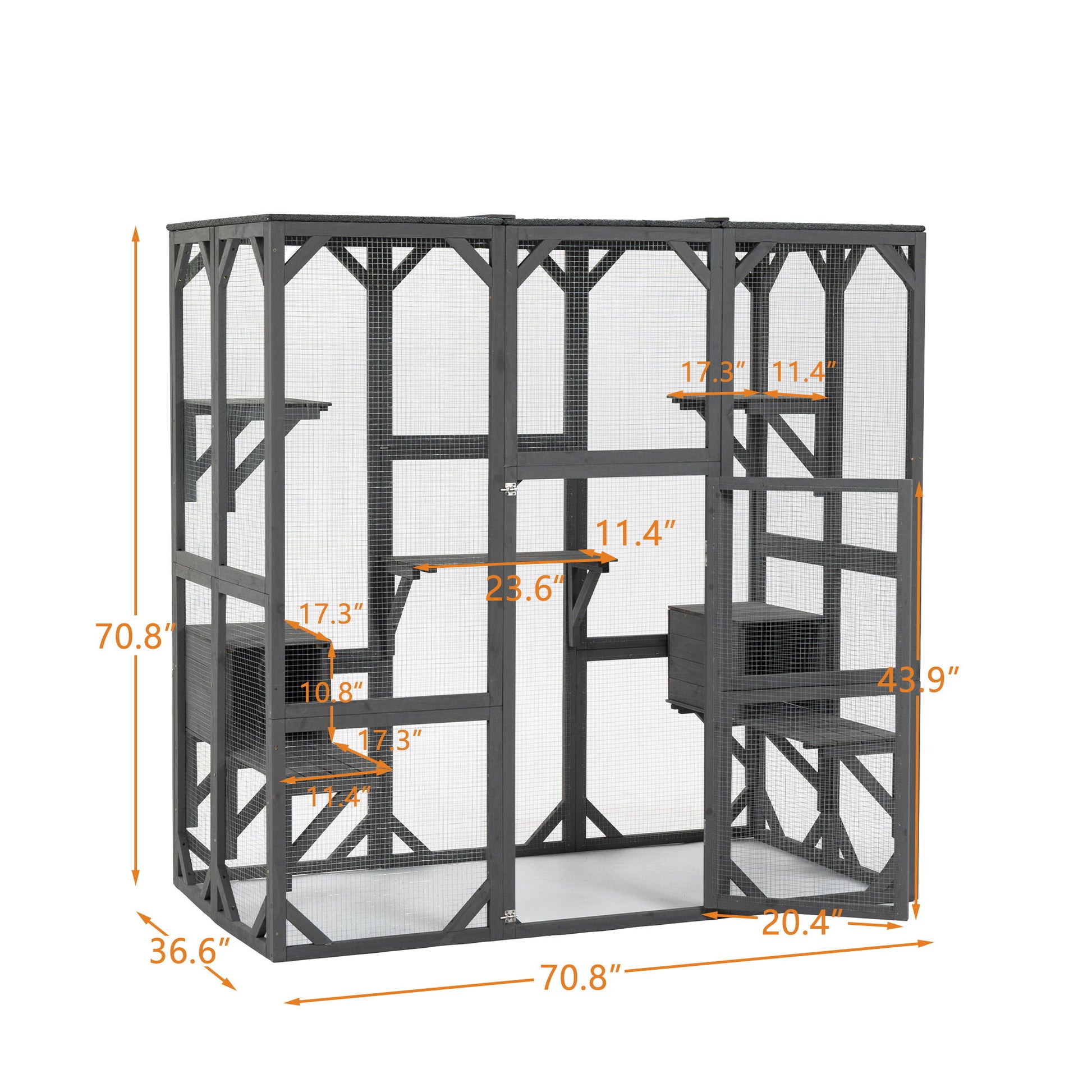 - Multi-functional Cat Cage DesignSpacious enclosure features 5 jumping platforms and 2 condos to meet your cat's play and rest needs.