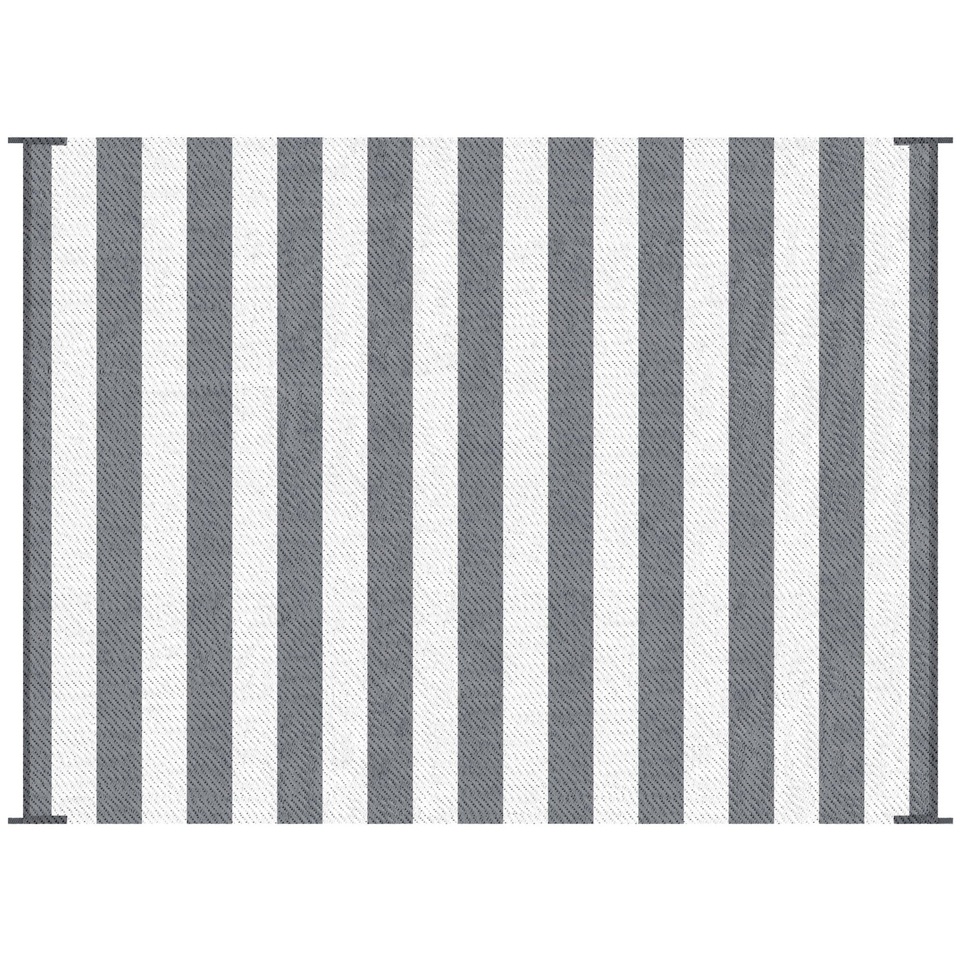 Outsunny - Reversible Outdoor Rug, 9' x 12' Waterproof Plastic Straw Floor Mat, Portable Rv Camping Carpet With Carry Bag, Large Floor Mat For Backyard, Deck, Picnic, Beach - Gray & White Striped