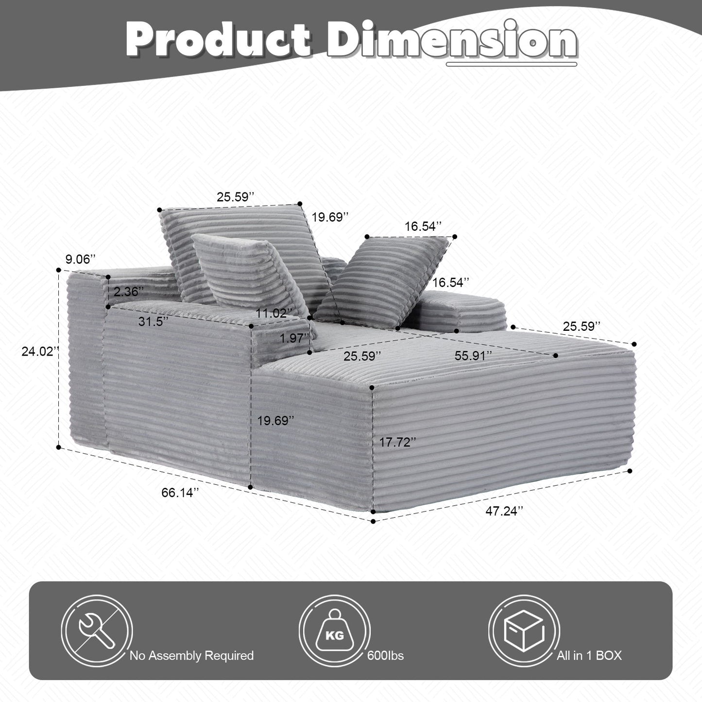 66.14"W x 47.24"D x 24.02"H - 84.7 lb