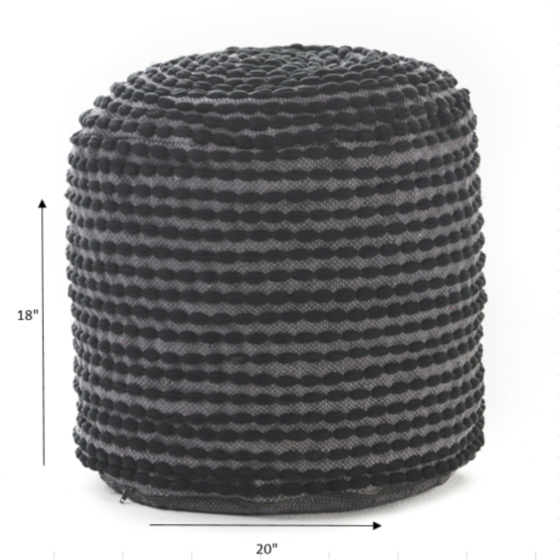 River - Handcrafted Cylindrical Pouf With Water Resistant Fabric - Black