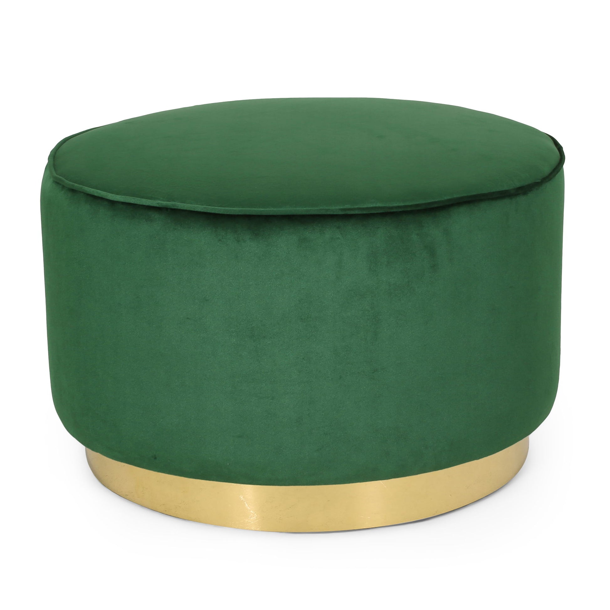 Round Velvet Ottoman, Upholstered Foot Stool For Living Room, Entryway - Emerald