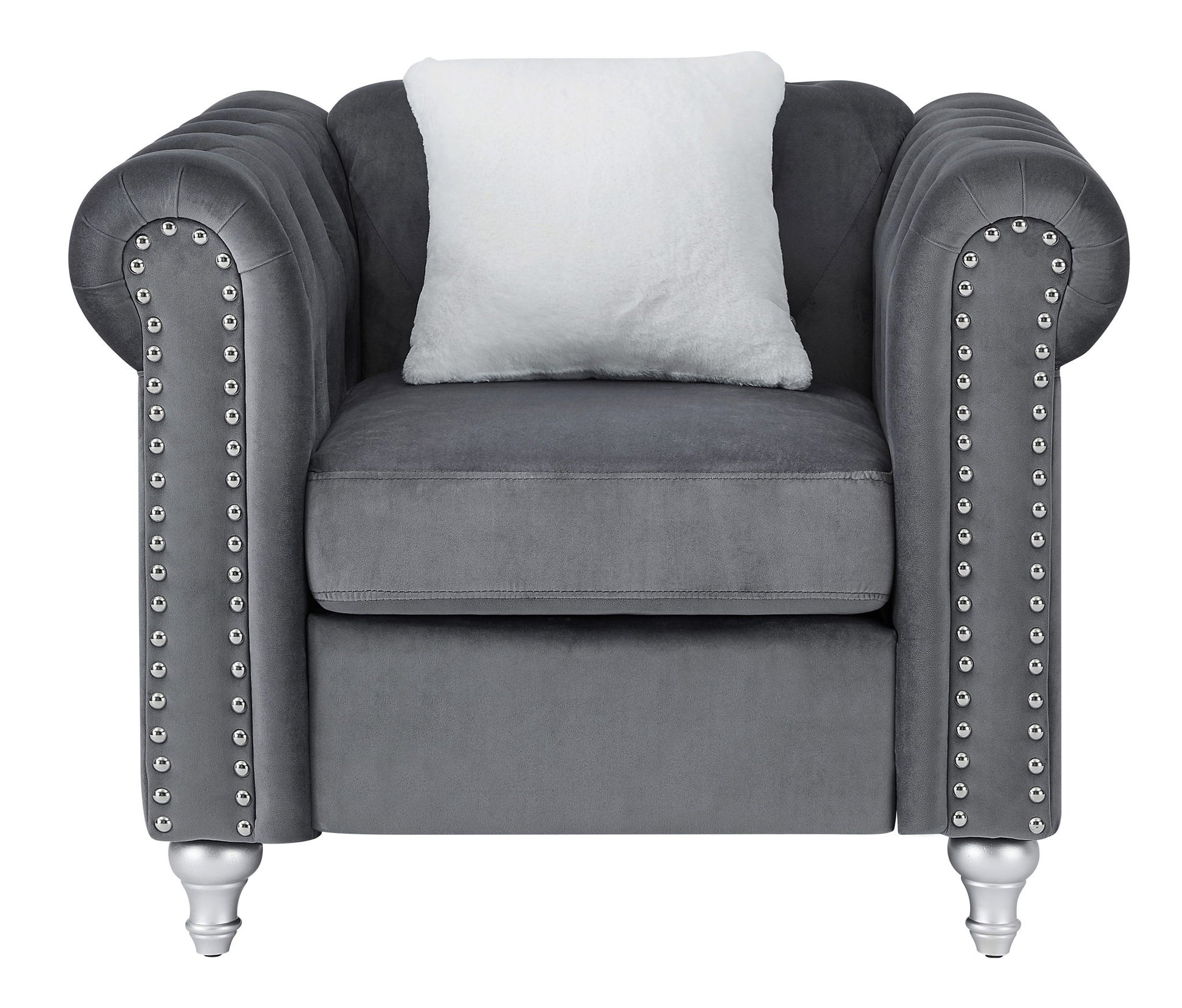 - Hand Applied Nailheads Accent: Contrasting nailheads add a touch of sophistication to the rich velvet micro suede cover for a stylish look.