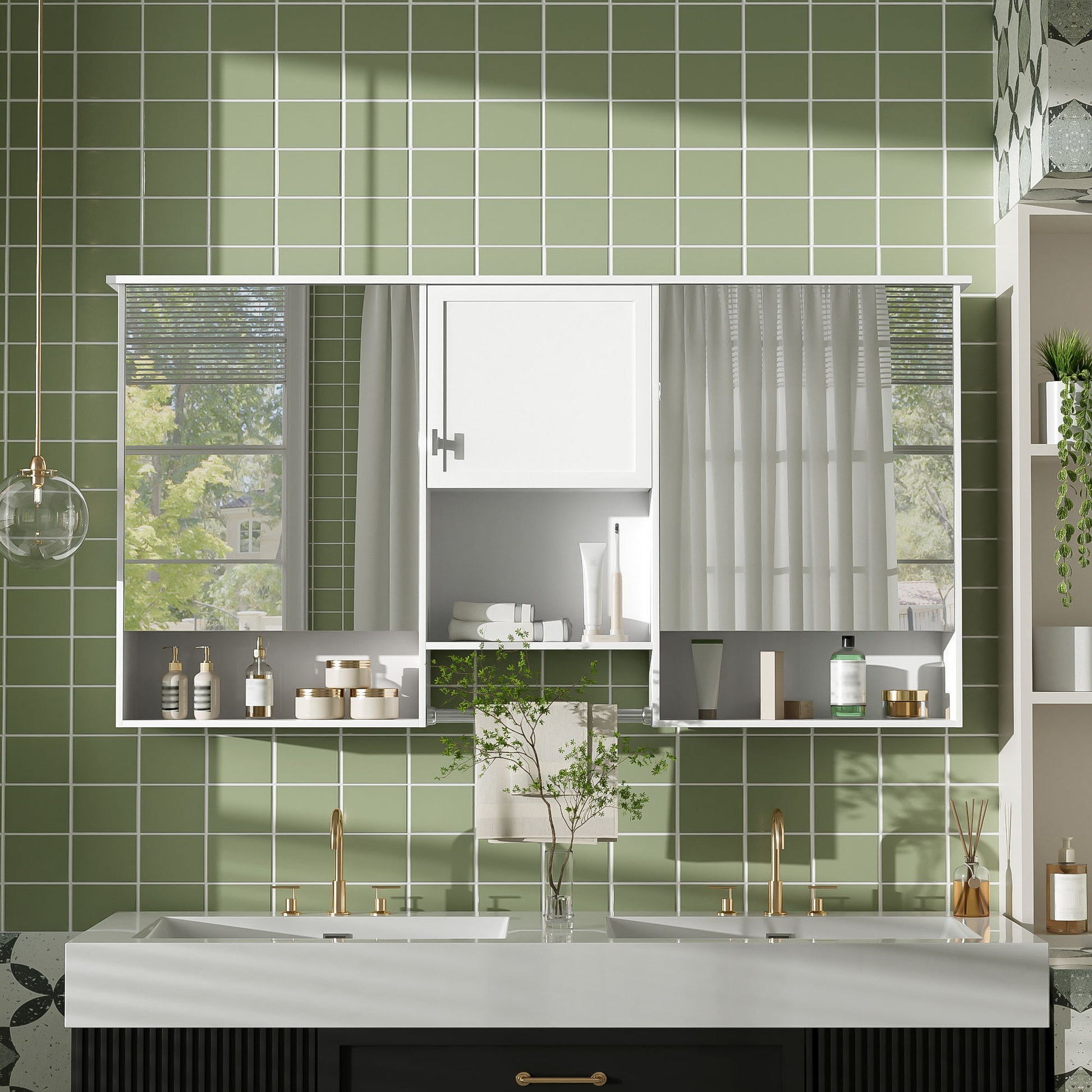 Wall-Mount 3-In-1 Mirror Cabinet With Adjustable Shelf, Soft-Closing Hinges, Rectangular Design - White